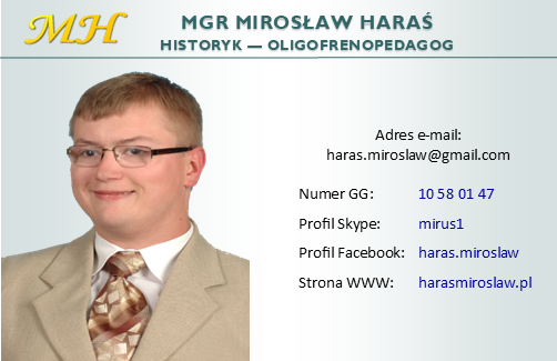 Będąc na V roku studiów magisterskich rozpocząłem naukę na studiach podyplomowych "Edukacja Obywatelska i Wychowanie do Życia w Rodzinie", w celu podniesienia swoich kwalifikacji zawodowych i uzyskania uprawnień do nauczania kolejnych przedmiotów, tj. Wiedzy o Społeczeństwie i Wychowania w Rodzinie we wszystkich typach szkół. Po ukończeniu studiów magisterskich i otrzymaniu tytułu magistra historii oraz wspomnianych wyżej studiów podyplomowych, chcąc jeszcze bardziej zwiększyć swoje szanse na rynku pracy, poprzez uzyskanie uprawnień do pracy z dziećmi i młodzieżą niepełnosprawną intelektualnie i ruchowo, rozpocząłem naukę na kolejnych podyplomowych studiach z zakresu Oligofrenopedagogiki na Wydziale Pedagogiki i Psychologii Uniwersytetu Śląskiego w Katowicach.